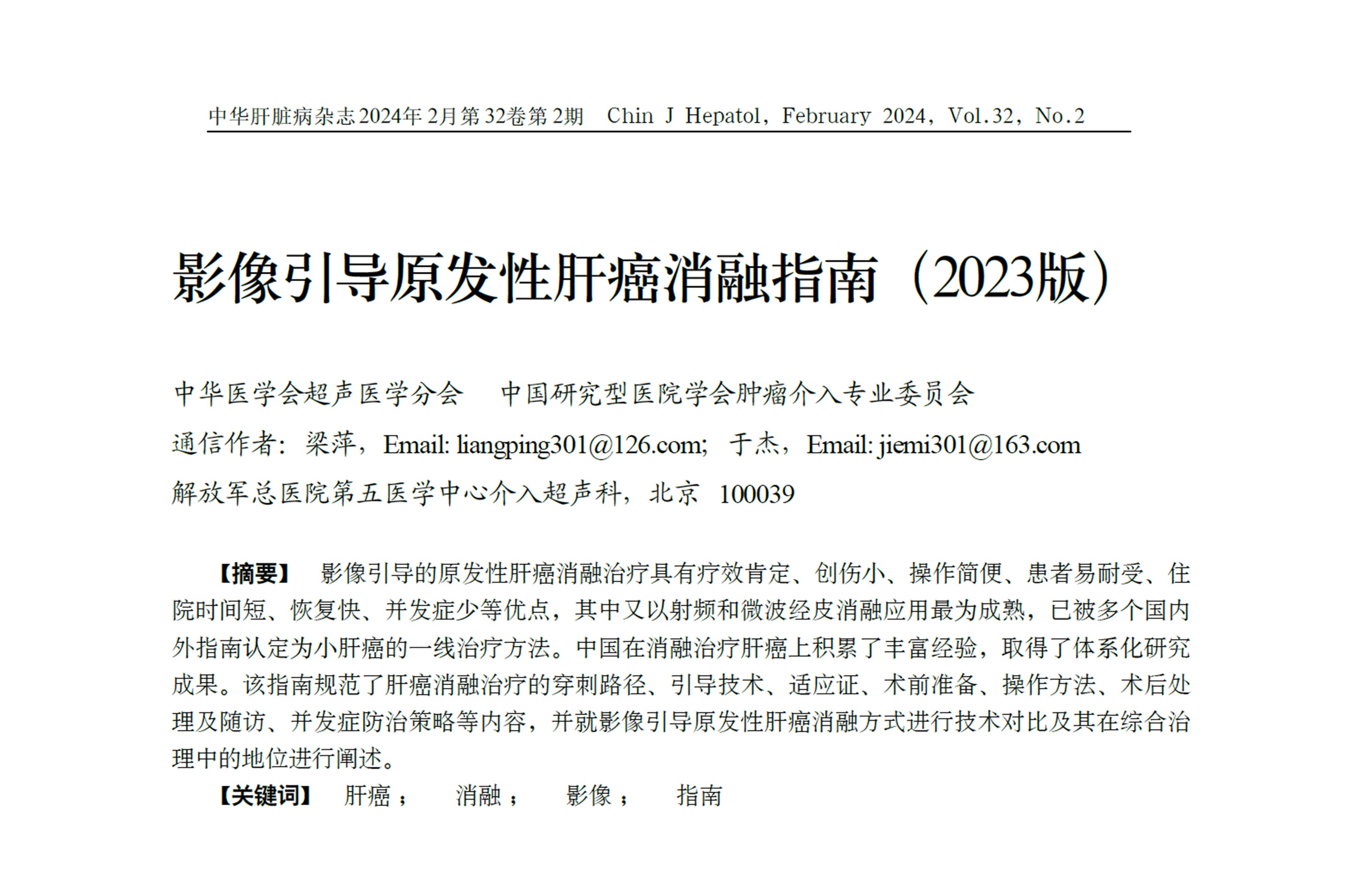 该指南规范了肝癌消融治疗的穿刺路径、引导技术、适应证、术前准备、操作方法、术后处理及随访、并发症防治策略等内容,并就影像引导原发性肝癌消融方式进行技术对比及其在综合治理中的地位进行阐述。